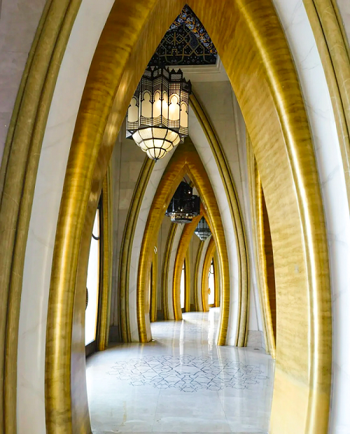 外飾面通過(guò)雅泰集團(tuán)生產(chǎn)的黃褐色金屬光澤的鋁單板表達(dá)出輕盈、時(shí)尚的品質(zhì),內(nèi)核金色磚紋肌理表達(dá)出濃烈的新疆地域文化特征,整個(gè)建筑如盛開(kāi)的金色雪蓮。